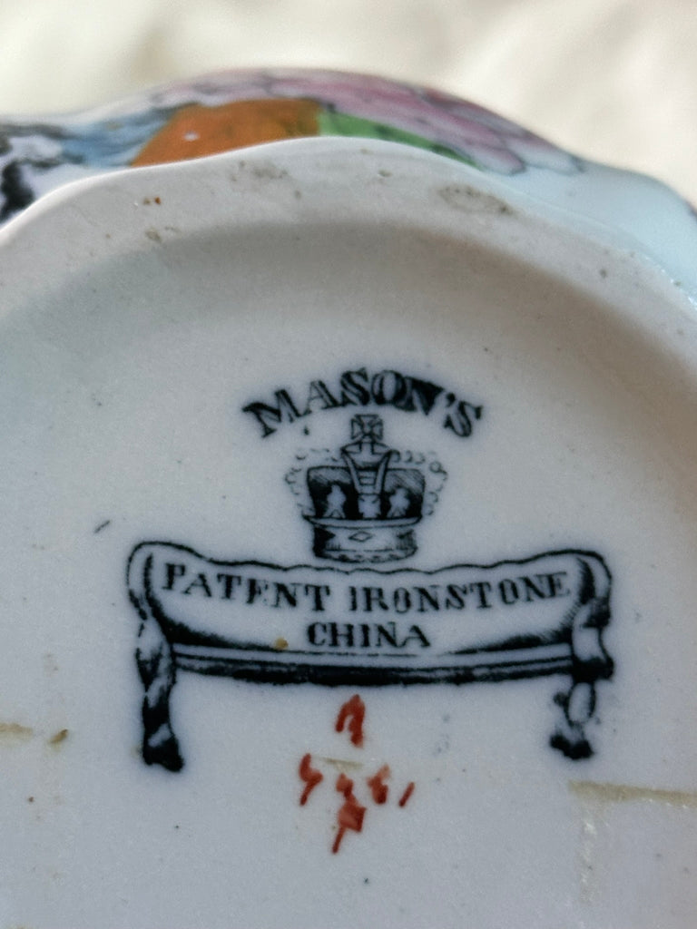 Large pitcher. Masons Ironstone. Multicolor birds and flowers. Circa 1825