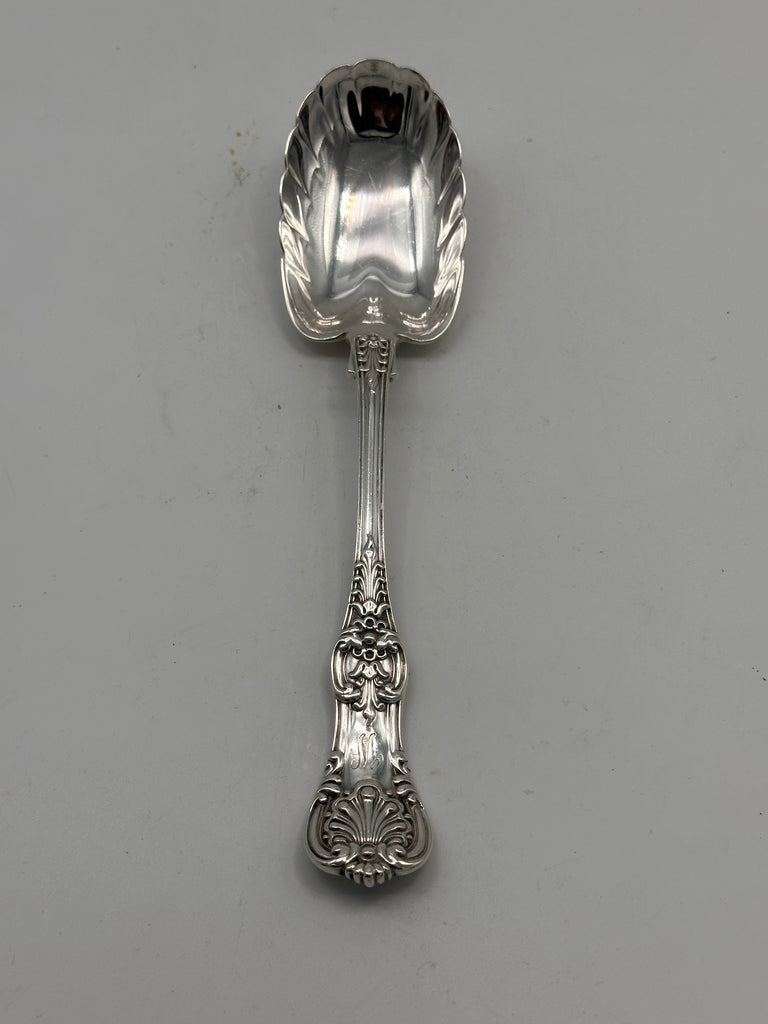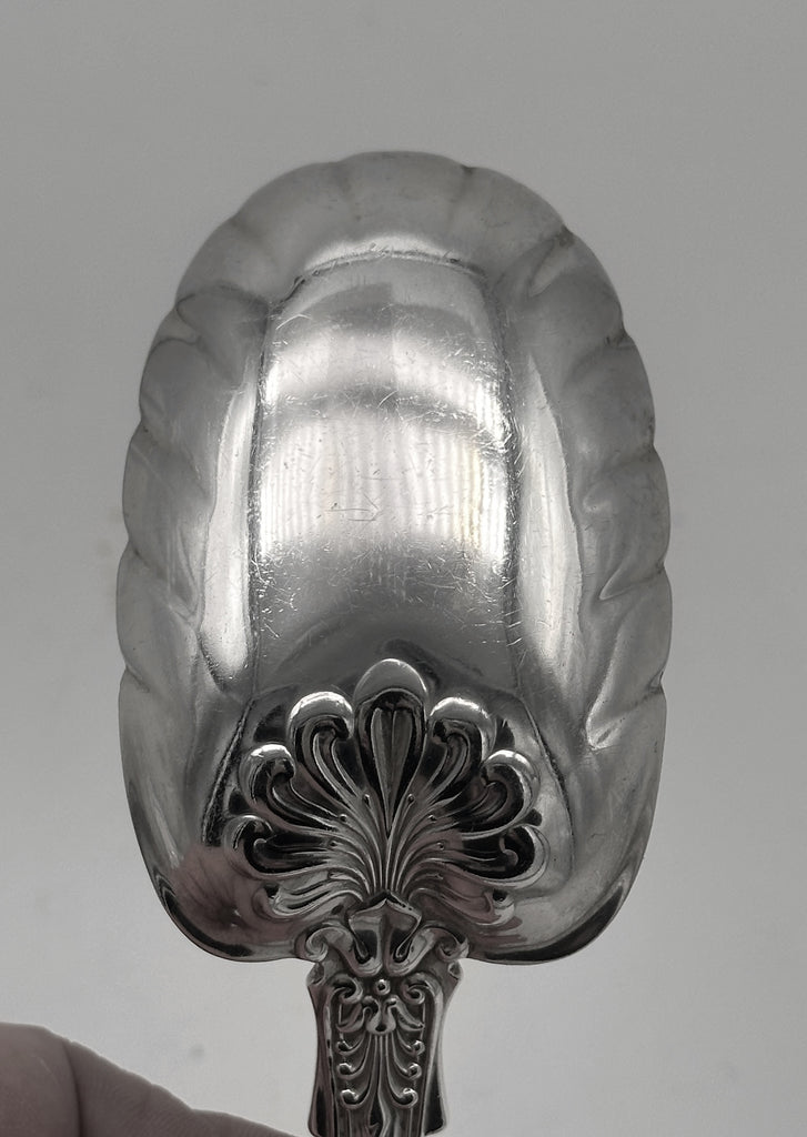 Berry serving spoon with scalloped bowl. Tiffany & Co. sterling silver. English King pattern.