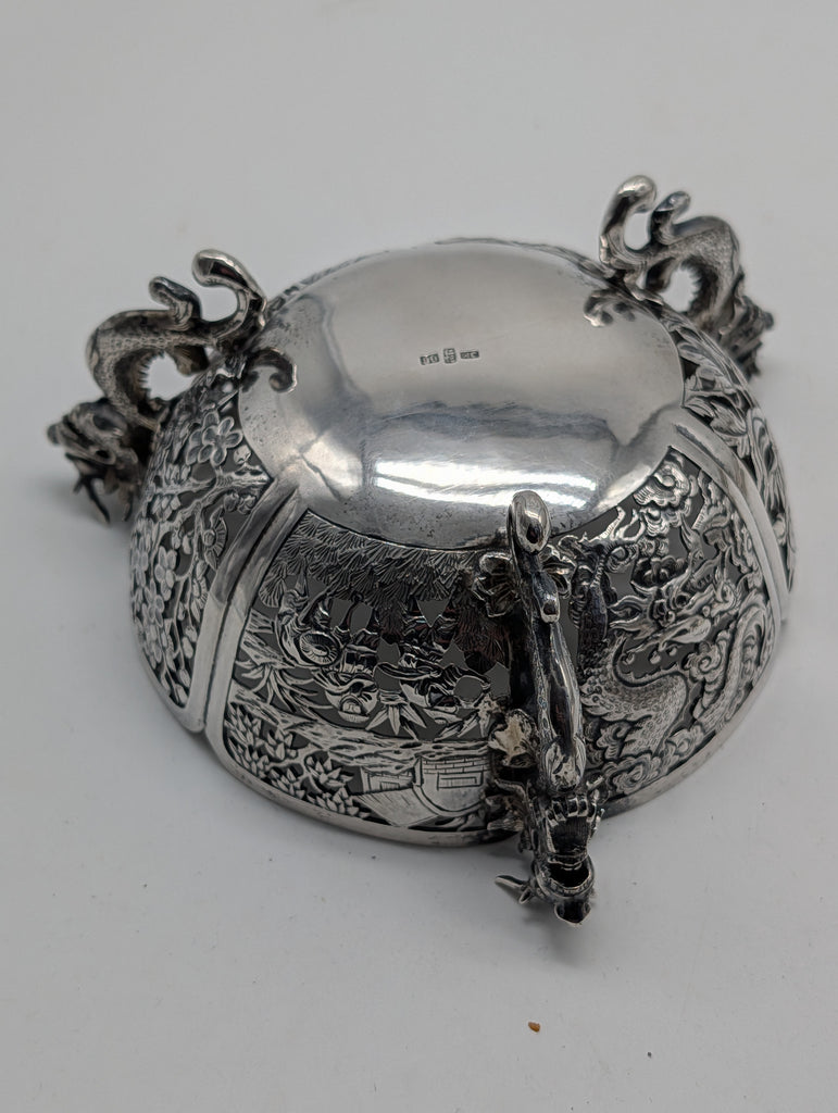 Chinese Export Silver Pierced Dragon Bowl. WC Maker Mark. Circa 1890