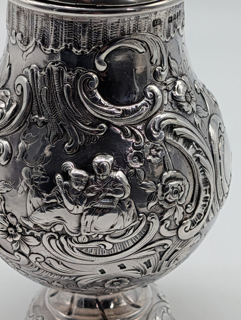 Stamped with both German silver marks for .930 and English silver, London 1899 import mark.