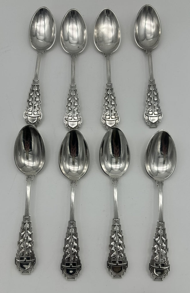 RARE set of eight Gorham sterling silver souvenir spoons from the Saint Juliana Mines in Mexico.