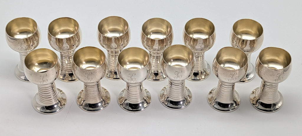 Set of 12 Cordial Shot Glasses. American Lunt Sterling Silver. #1114. 2 3/4" H