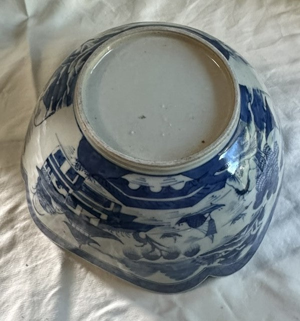 Bowl Notched Corners. Chinese Blue and White Canton Porcelain. Late 19th C.
