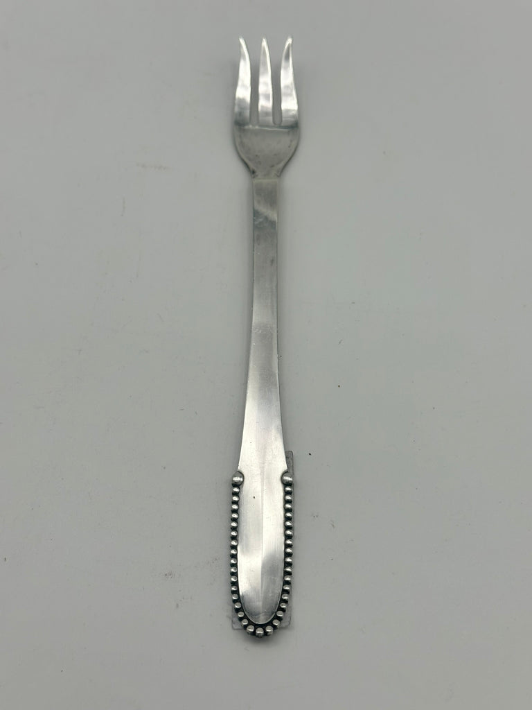 Seafood cocktail fork. Georg Jensen Denmark sterling silver. Beaded pattern.