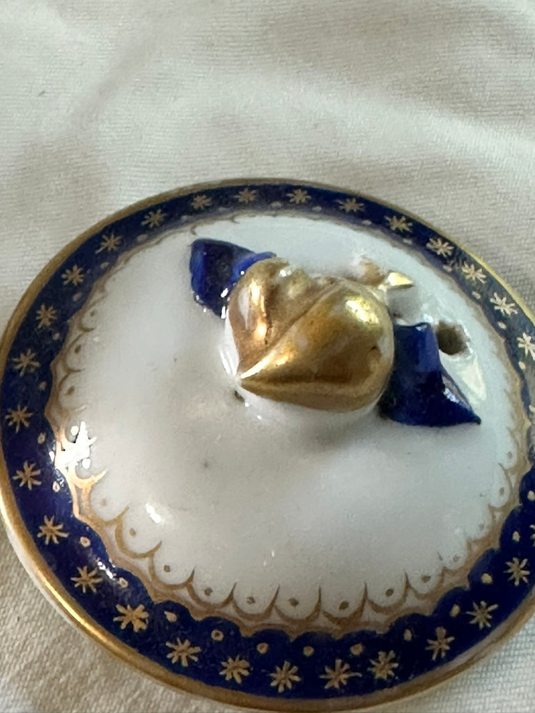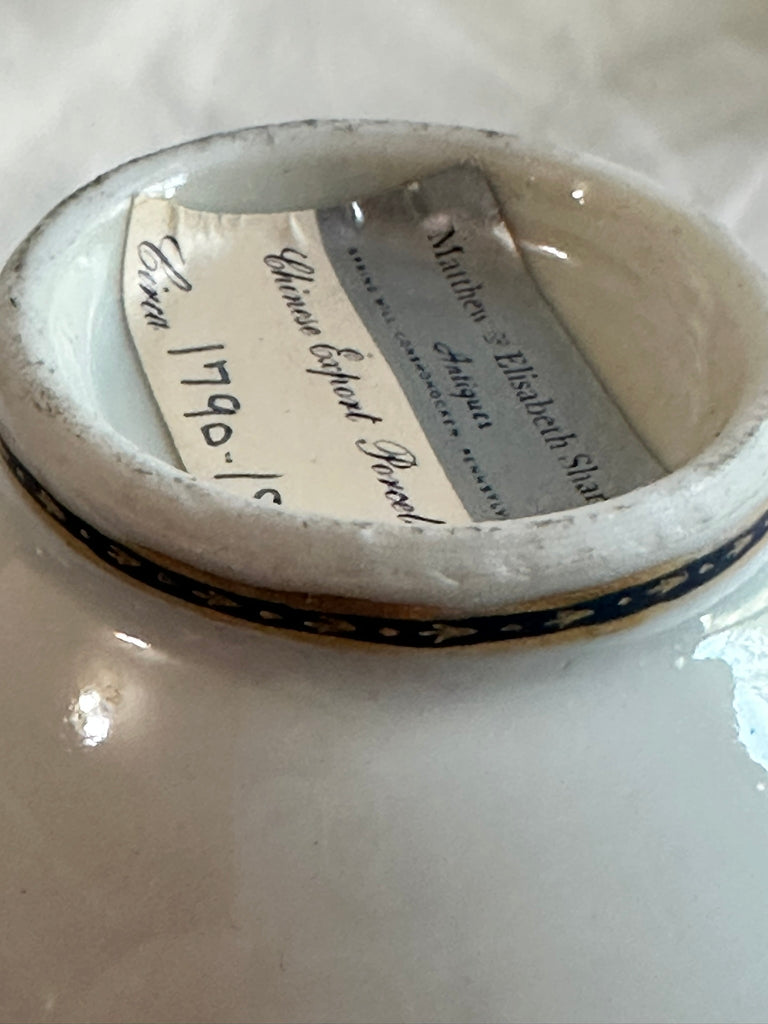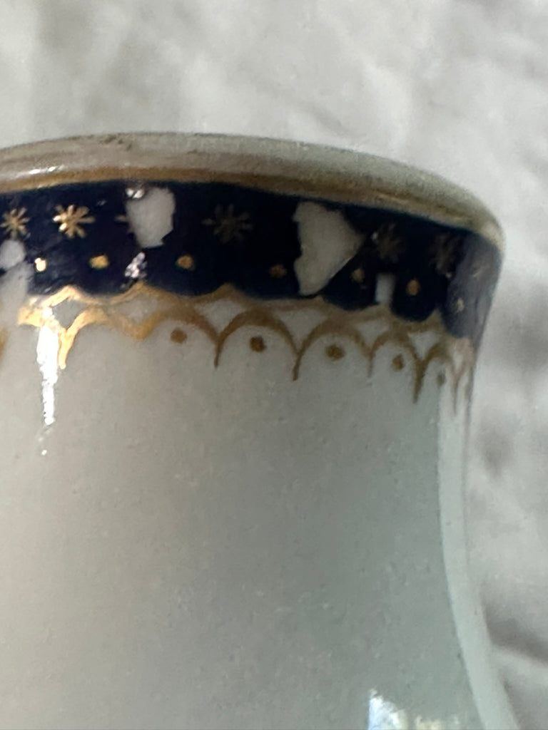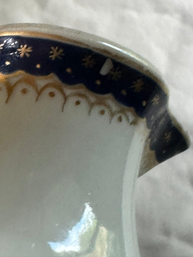 Small Pitcher. Chinese Export Porcelain. Blue Flowers. Peach Finial. Circa 1790